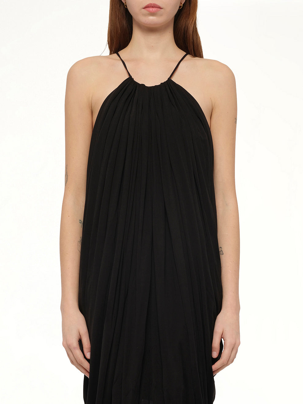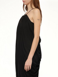 Loewe's Draped Dress in Black is a sophisticated and elegant piece that exudes timeless style. Perfect for any formal occasion, this dress features a flattering silhouette and exquisite detailing. - Composition: Exterior: 100.0% Seda-Silk Interior: 100.0% Poliester-Polyester - Color: Black - Design: Draped style - Neckline: Asymmetric - Length: Midi - Closure: Concealed back zipper - Occasion: Formal events - Made in Italy Model is 178 cm and wears size 36 SKU: S359Y09XJ0 1100