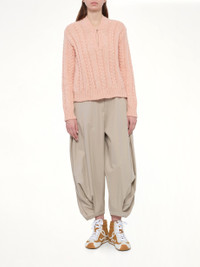 LOEWE's Draped Trouser AF in Beige is a sophisticated addition to any wardrobe, offering a blend of elegance and modern style. These trousers feature a unique draped design that provides a flattering silhouette. - Composition: Exterior: 10.0% SEDA-SILK 90.0% ALGODON-COTTON Interior: 100.0% ALGODON-COTTON - Color: Beige - Unique draped design - Flattering silhouette - Modern and elegant style - Versatile for various occasions - Made in Italy Model is 178 cm and wears size 36 SKU: S540Y04XMP 2140
