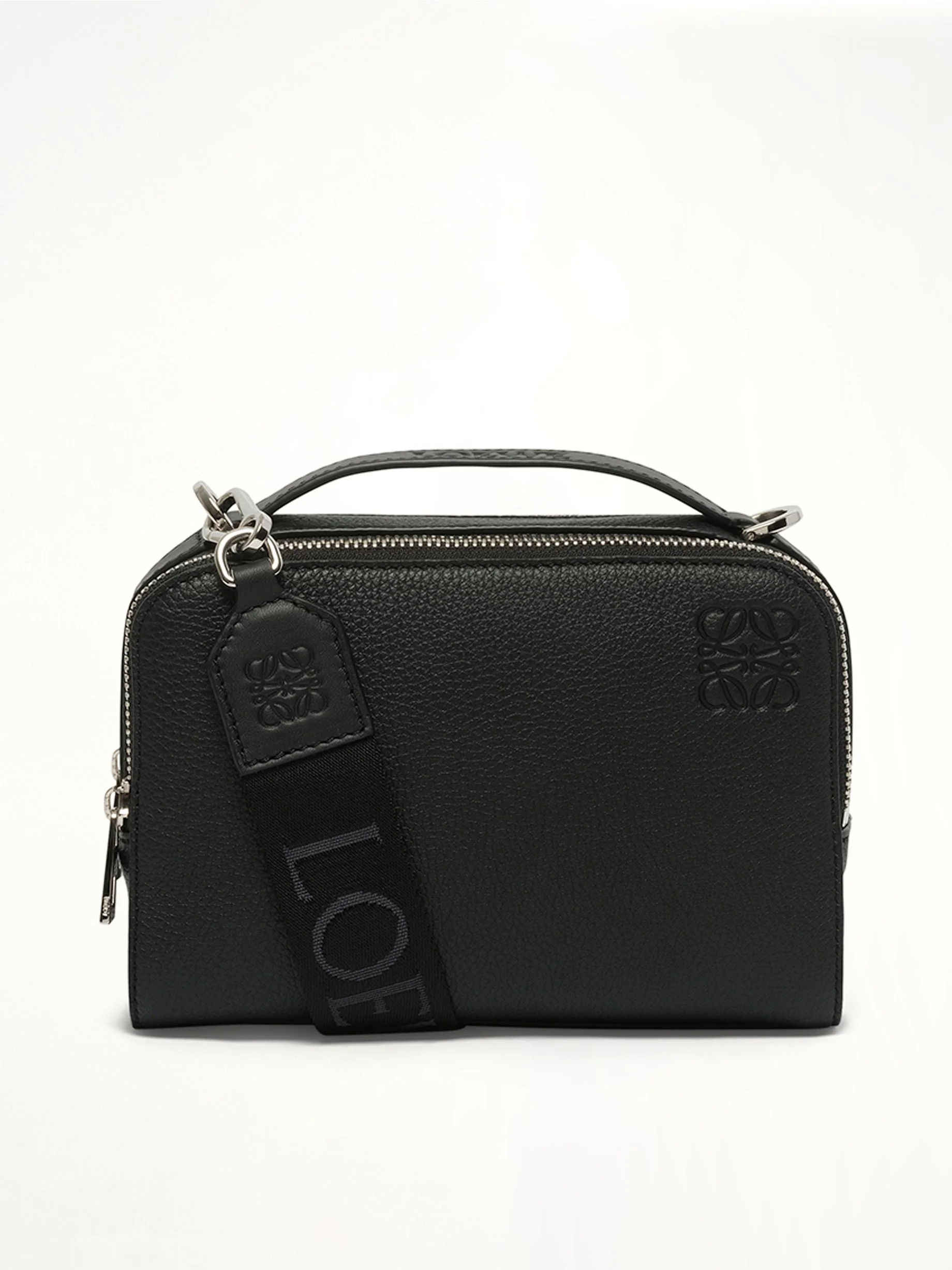 LOEWE's Essential Camera Bag Mini in Black is a sleek and versatile accessory designed for the modern individual. Its compact size and minimalist design make it perfect for carrying essentials with style. - Composition: Exterior: 100.0% Vacuno-Calf Skin Interior: 38.0% Poliamida-Polyamide 62.0% Algodon-Cotton Otherparts: 100.0% Poliester-Polyester - Compact and lightweight design - Adjustable shoulder strap for comfort - Secure zip closure - Interior pocket for organization - Signature LOEWE branding - Made in Spain SKU: C660R41X01 1100