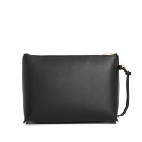 This Loewe Embossed T-Pouch is crafted from high-quality materials and features an elegant black design. Its embossed finish adds texture and character, making it a stylish and practical accessory for carrying essentials. Its timeless design will elevate any outfit, making it a must-have for fashion-forward individuals. - Composition: 100% Shiny Nappa Calf - Hand or wrist carry - Wrist strap - Zip closure with calfskin pull - Herringbone cotton canvas lining - Dimensions: 19 (H) x 25 (L) x 2 (W) cm SKU: CLE0MIPX01 1100