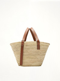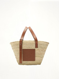 This medium basket bag is expertly crafted from durable palm leaf and soft calfskin in a natural/tan colour scheme. Perfect for a day at the beach or a casual outing, it offers a stylish solution for carrying your essentials with ease. - Composition: 100% Calfskin Leather, 100% Palm leaves - Shoulder or top handle carry - Customisable with strap and personalised charms - Unlined - Embossed Anagram patch - Adjustable top handles (22 cm) - Dimensions: 27 (H) x 40 (L) x 16 (W) cm SKU: 327.02.S92 2435/A223S92XAX 2435