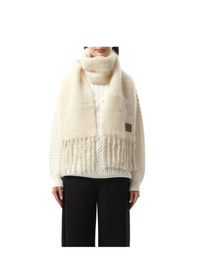 The Mohair Blend Scarf in White is expertly crafted from a soft and luxurious blend of mohair, ensuring warmth and comfort. The classic white color adds a touch of elegance to any outfit, making it a versatile and timeless accessory. - Composition: 73% Mohair, 24% Wool - Fringed edge - Wraparound style - Logo on the front - Made in Spain SKU: FSA6SS1X05 2100