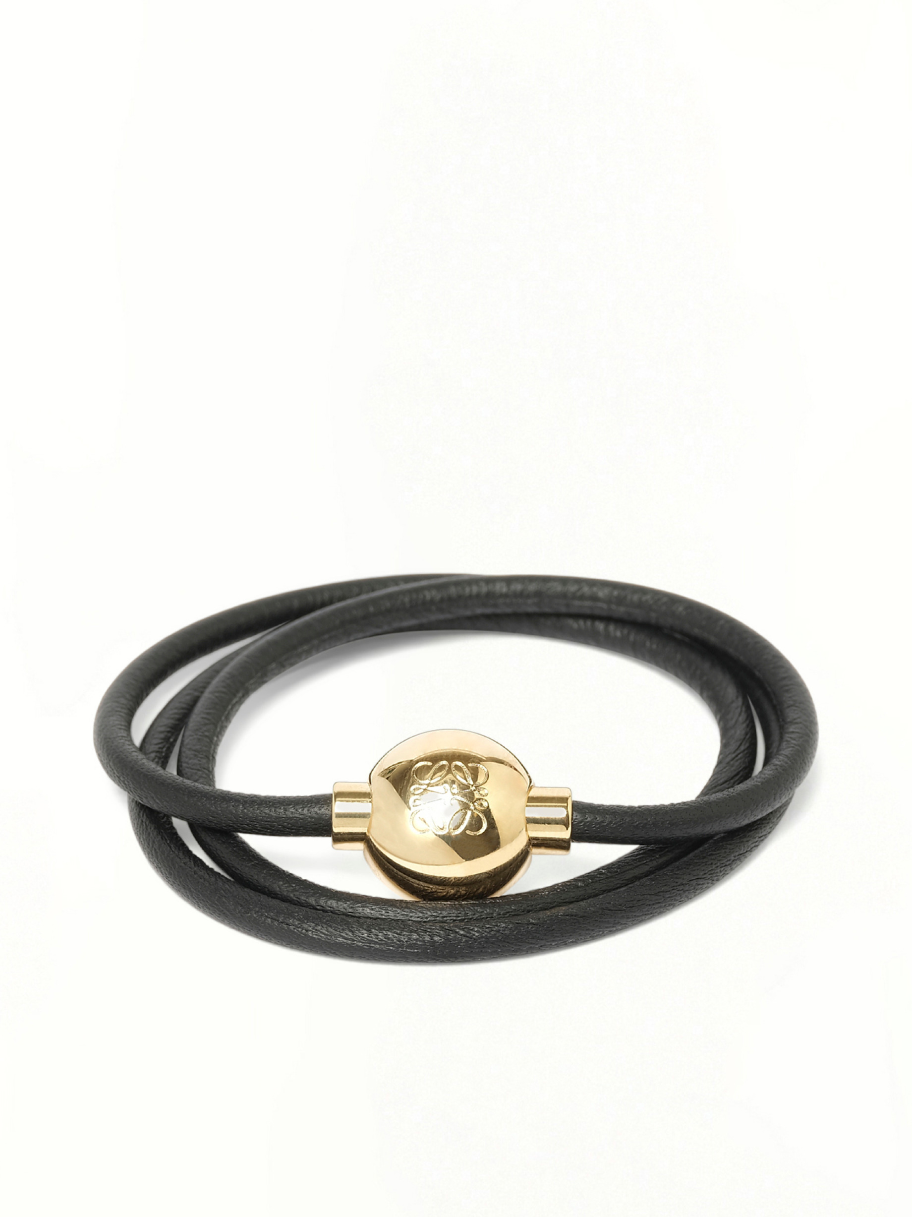 LOEWE's New Pebble Bracelet in Black/Gold is a stunning accessory that effortlessly combines elegance with modern design. Perfect for any occasion, this bracelet adds a touch of sophistication to your ensemble. - Composition: Exterior: 100.0% Vacuno-Calf Skin - Striking black and gold color combination - Adjustable fit for comfort - Unique pebble design for a contemporary look - Versatile accessory for day or night wear Model is 187 cm and wears size S SKU: JJ07240X01 1206