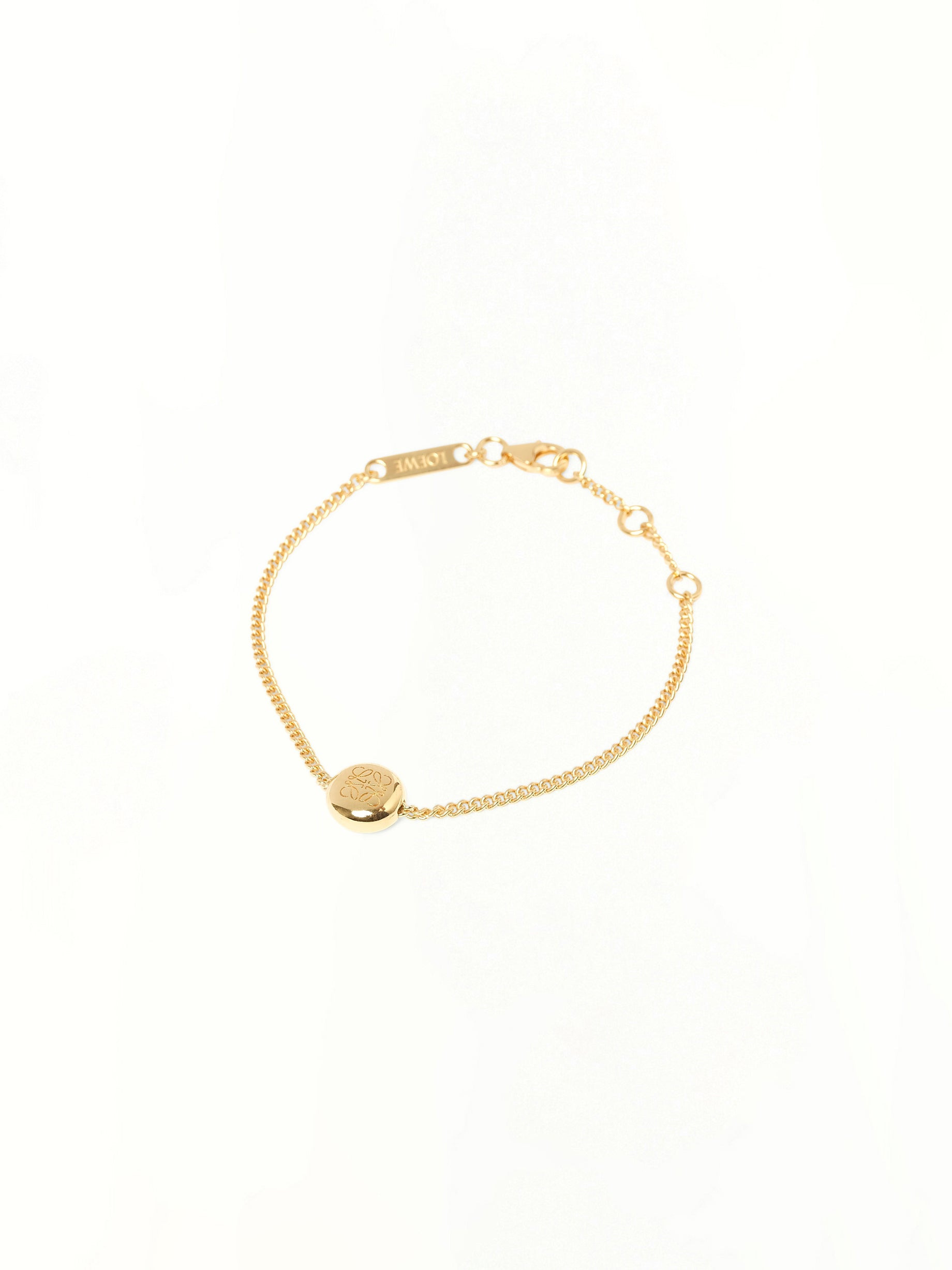 Loewe's Pebble Bracelet in Gold is a stunning accessory that adds a touch of elegance to any outfit. Its unique design and luxurious finish make it a must-have for fashion enthusiasts. - Composition: Exterior: 100.0% Sterling Silver-Plata De Ley 925 - Features a distinctive pebble-inspired design - Polished gold finish for a sophisticated look - Adjustable fit for comfortable wear - Perfect for both casual and formal occasions - Made in Italy Model is 178 cm and wears size S SKU: JANB240X06 8130