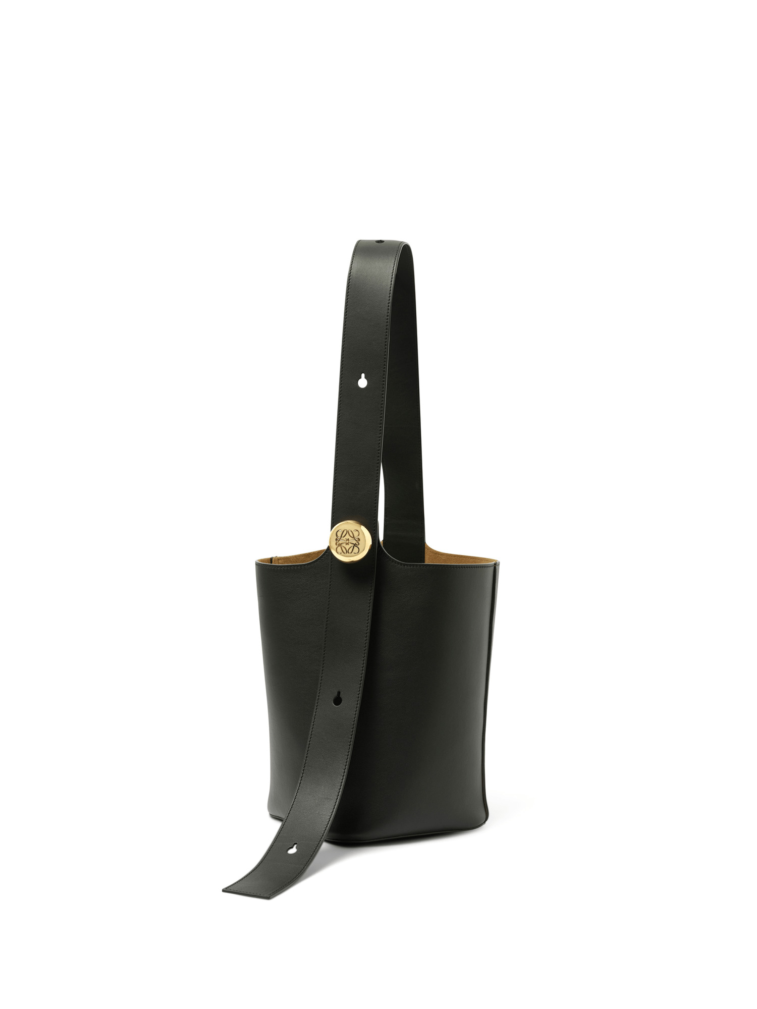 The Pebble Bucket Medium in Black is a versatile and stylish option for carrying your essentials. Made from durable calf leather, this medium-sized bucket bag is perfect for everyday use. With its sleek black color, it can easily be dressed up or down for any occasion. - Composition: 100% Smooth Calf - One internal pocket - Bonded suede lining - Engraved Anagram - Made in Spain - Adjustable strap (40 - 106 cm) - Dimensions: 28 (H) x 24 (L) x 23 (W) cm SKU: AANBBBWX01 1100