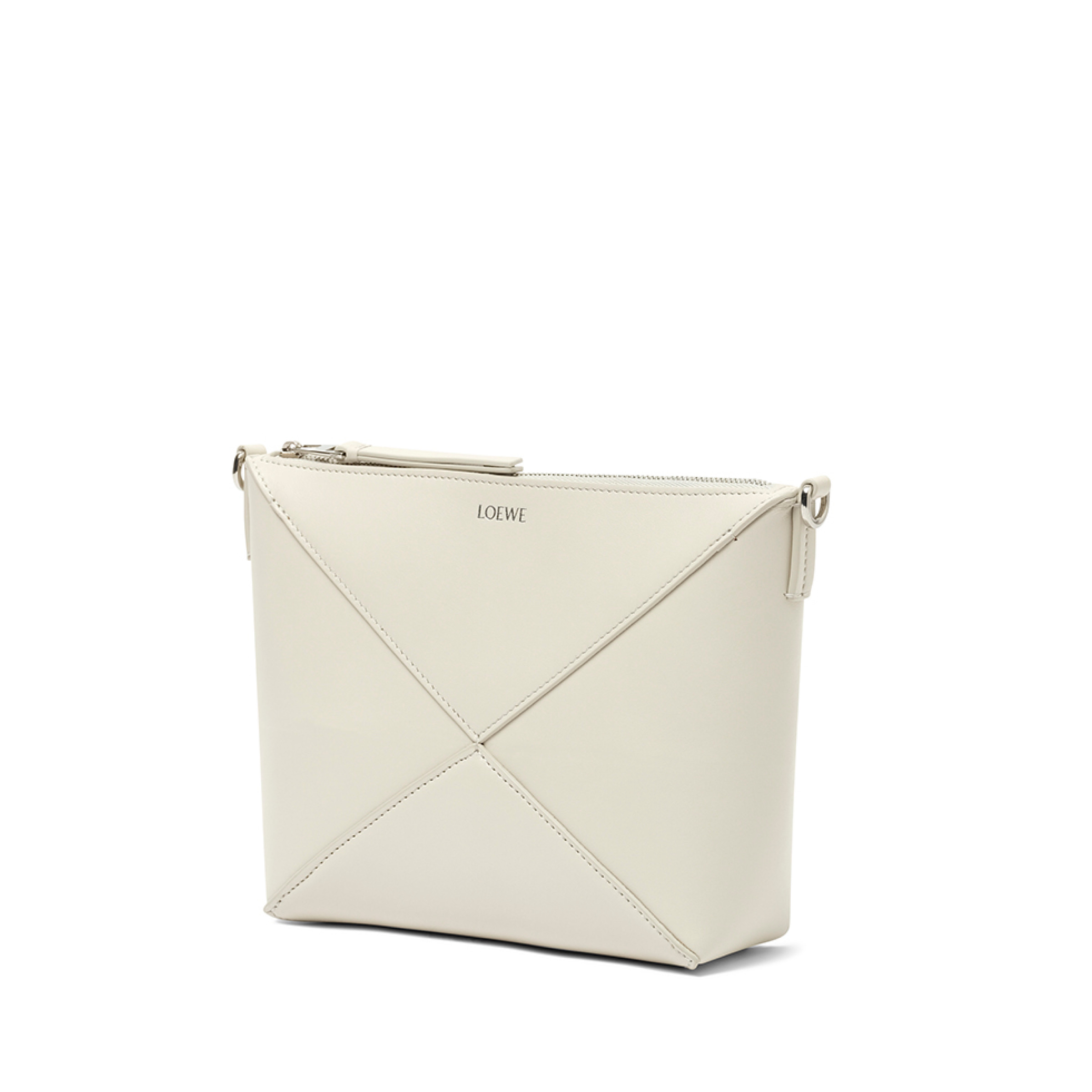 Made with durable materials and a unique puzzle fold design, this pouch offers maximum storage and functionality. Keep your belongings secure and easily accessible, all while adding a touch of style to your everyday life. - Composition: 100% Shiny Calf - Shoulder, crossbody or hand carry - Zip closure - Suede lining - Gold or silver embossed LOEWE - Made in Spain - Detachable and adjustable strap (52 - 95 cm) - Dimensions: 16 (H) x 23 (L) x 7 (W) cm SKU: C510PT1X01 3006