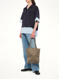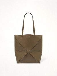 Loewe's Puzzle Fold Tote Medium in Taupe is a sophisticated and versatile accessory, perfect for both casual and formal occasions. Its unique design and practical features make it a must-have for any fashion-forward individual. - Composition: Exterior: 100.0% Vacuno-Calf Skin Interior: 100.0% Vacuno-Calf Split - Medium-sized tote with a distinctive geometric design - Spacious interior with multiple compartments for organization - Top handle and adjustable shoulder strap for versatile carrying options - Secure zip closure to keep belongings safe - Iconic Loewe branding for a touch of luxury - Made in Spain Model is 178 cm and wears size OS SKU: A779G50X89 3170