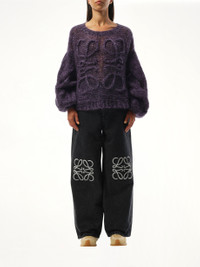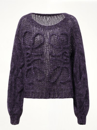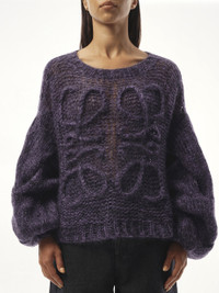 This sweater features a relaxed fit for a comfortable and laid-back feel. With a classic black and purple color combination, it's perfect for any occasion. Stay warm and fashionable with our Anagram Sweater. - Composition: 67% Mohair, 28% Polyamide, 5% Wool - Logo on the front - Long puff sleeves - Ribbed trim - Made in Italy Model is 175 cm and wears size S SKU: S359Y14KGW 1106