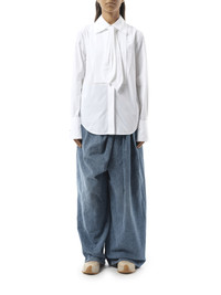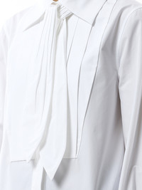 Made with high-quality materials, it offers comfort and style that can easily transition from a day at the office to a night out. Its timeless design pairs well with any pants or skirt, making it a staple piece for any fashion-forward individual. - Composition: 100% Cotton - Classic collar with neck-tie - Button closure - Long sleeves - French cuffs with gold-metal cufflinks - Made in Italy Model is 175 cm and wears size 36 SKU: S540Y05XBP 2100