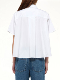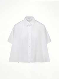 LOEWE's Short Sleeve Trapeze Shirt in White is a sophisticated blend of modern design and timeless elegance. Perfect for any occasion, this shirt effortlessly elevates your wardrobe with its unique silhouette. - Composition: Exterior: 4.0% Poliester-Polyester 96.0% Algodon-Cotton - Short sleeve design for a relaxed fit - Trapeze silhouette for a flattering shape - Crisp white color for versatile styling - Button-down front for easy wear - Signature LOEWE craftsmanship Model is 187 cm and wears size 36 SKU: S359Y05XEW 2100
