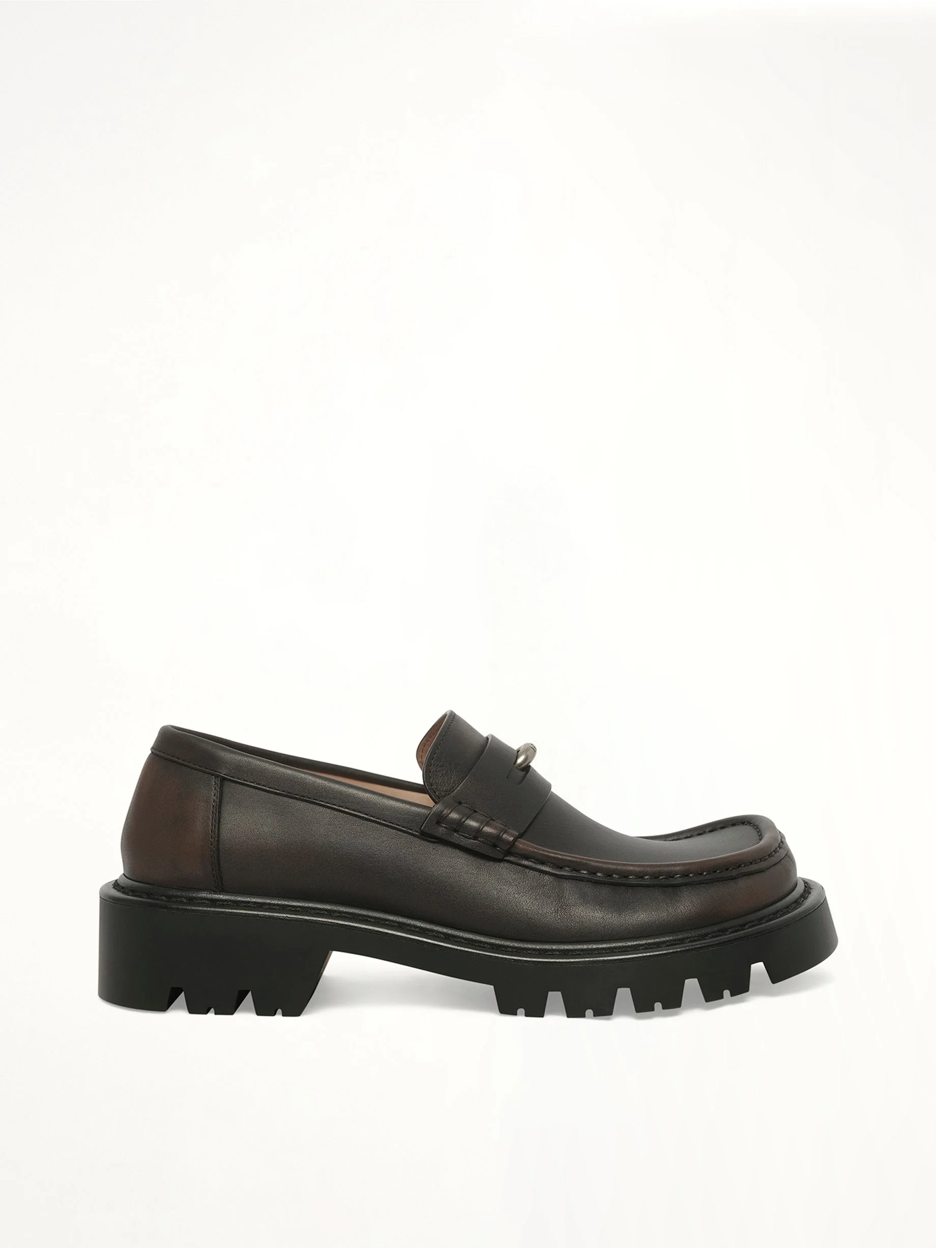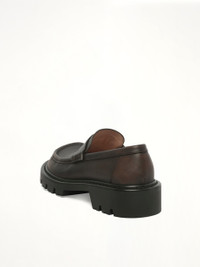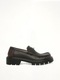 LOEWE's Sierra Loafer Donut in Dark Brown is a sophisticated and versatile footwear choice, perfect for both formal and casual occasions. Crafted with attention to detail, these loafers offer a timeless design with a modern twist. - Composition: Exterior: 100.0% Vacuno-Calf Skin Interior: 100.0% Vacuno-Calf Skin Sole: 80.0% Poliuretano-Polyurethane 20.0% Poliuretano Termoplastico-Thermoplastic Polyurethane - Classic loafer silhouette with a unique donut detail - Rich dark brown color for a versatile look - Comfortable fit with a sleek design - Durable sole for long-lasting wear - Ideal for both professional and casual settings - Made in Italy SKU: LSRR290X02 3110