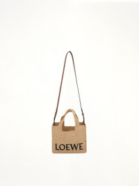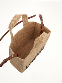 Small Logo Font Tote Bag in Raffia and Calfskin in Natural