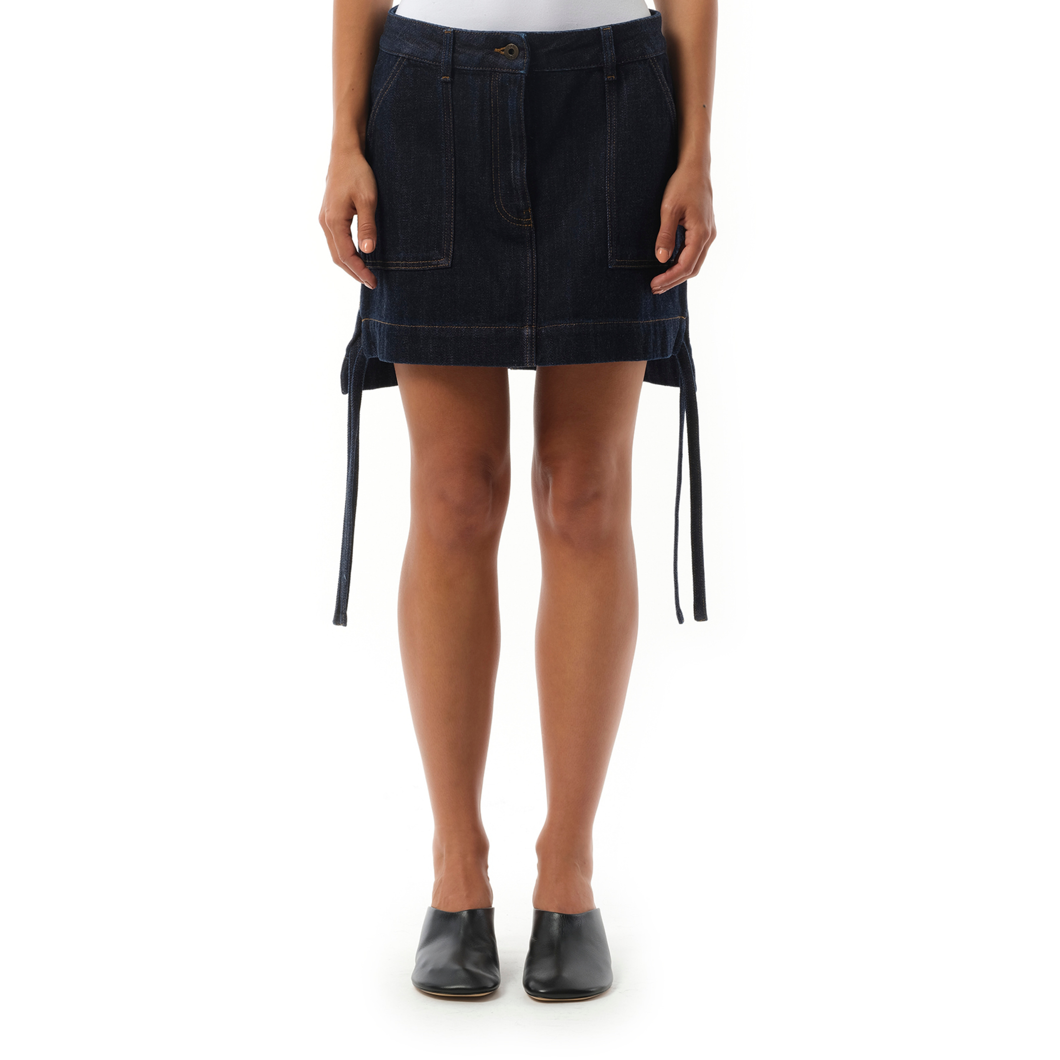 Introducing our Workwear Skirt in Indigo Blue - the perfect addition to your professional wardrobe. Made for comfort and style, this skirt is designed with a flattering fit and durable fabric. Elevate your work attire with this versatile and sophisticated piece. - Composition: 100% Cotton - Concealed zip fastening - Patch pockets - Signature four-row topstitching - Leather patch pocket placed at the back - Made in Italy Model is 175 cm and wears size 36 SKU: S359Y1EX19 5380