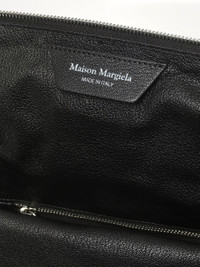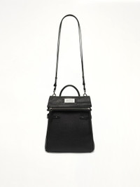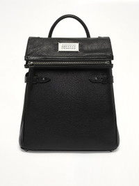 Maison Margiela's 5AC Top Handle Backpack in Black is a versatile and stylish accessory that combines functionality with a modern aesthetic. Perfect for both casual and formal settings, this backpack offers ample space and a sleek design. - Composition: Body: 100% Goat Leather - Application: 100% Calf Leather - Lining: 100% Polyester - Inside: 100% Goat Leather - Metallic Parts: 100% Brass - Metallic Parts: 100% Zama - Top handle and adjustable shoulder straps for versatile carrying options - Spacious main compartment with secure zip closure - Signature Maison Margiela branding details - Interior pockets for organized storage - Durable construction for everyday use - Made in Italy Model is 187 cm and wears size OS SKU: SB1WA0018P5348 T8013