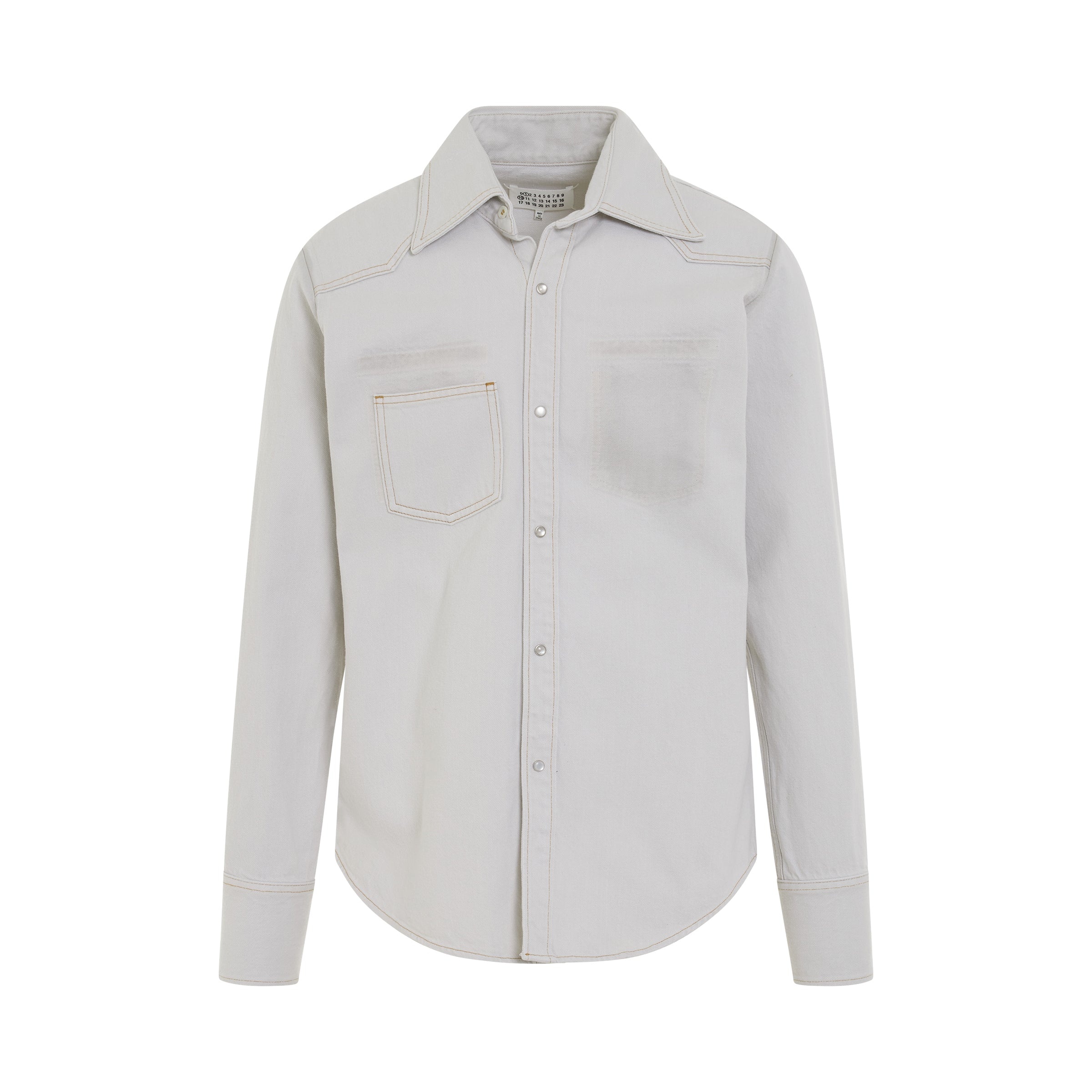 Maison Margiela selvedge denim shirt •Composition: Cotton 100% •Ice •Classic collar •Front button fastening •Long sleeves •Curved hem •Chest patch pocket SKU: S50DT0007S30857 961