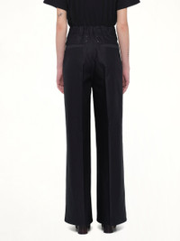 Maison Margiela's Cotton Palazzo Trouser in Black is a sophisticated addition to any wardrobe, offering a blend of comfort and style. These trousers are designed to provide a flattering silhouette with a modern edge. - Composition: Primary Fabric: 100% Cotton - Pocket Lining: 100% Cotton - Wide-leg design for a relaxed fit - High-waisted for a flattering look - Concealed zip closure for a seamless finish - Side pockets for added functionality - Versatile black color suitable for various occasions - Made in - Model is 178 cm and wears size 38 SKU: S29KA0394M35574 900