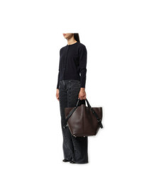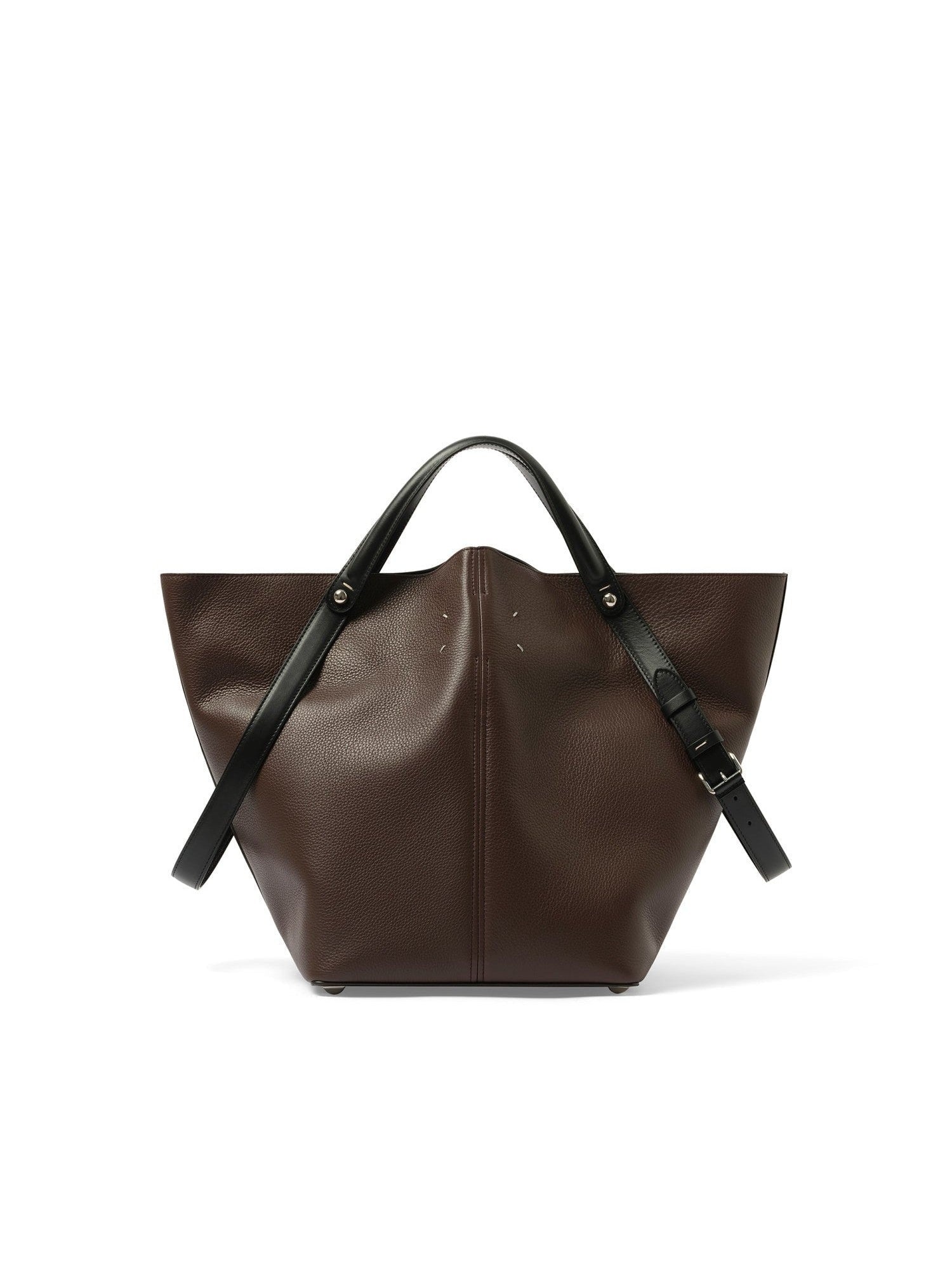Maison Margiela's Dress-Age Large Bag in Walnut/Black combines a unique colour palette with a structured, contemporary design. The spacious interior and elegant mix of walnut and black hues make it an ideal accessory for both everyday wear and special occasions. Composition: Body: 100% Calf Leather - Contrast: 100% Calf Leather - Lining: 100% Ovine Leather - Inside: 100% Calf Leather - Inside: 100% Polyester - Metallic Parts: 100% Zama - Metallic Parts: 100% Brass Walnut and black colour combination offers a sophisticated and versatile look Large size provides ample storage space for everyday essentials Structured design with a top handle and detachable shoulder strap for versatile carrying Minimalist, modern aesthetic with subtle brand detailing Made in Italy SKU: SB1WD0022P7268 HA754