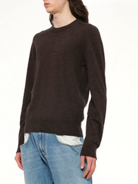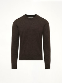 Maison Margiela's Gauge 12 Knit Sweater in Dark Brown is a sophisticated addition to any wardrobe, offering a timeless design with a modern twist. This sweater combines comfort and style, making it perfect for both casual and formal occasions. - Composition: Primary Fabric: 100% Wool - Application: 100% Calf Leather - Classic crew neck design - Rich dark brown color - Fine gauge knit for a sleek silhouette - Ribbed cuffs and hem for a snug fit - Signature Maison Margiela stitching detail - Made in N/A Model is 187 cm and wears size M SKU: S50HL0041M13098 144M