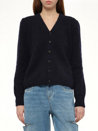 Gauge 5 Cardigan in Navy/Dark Brown