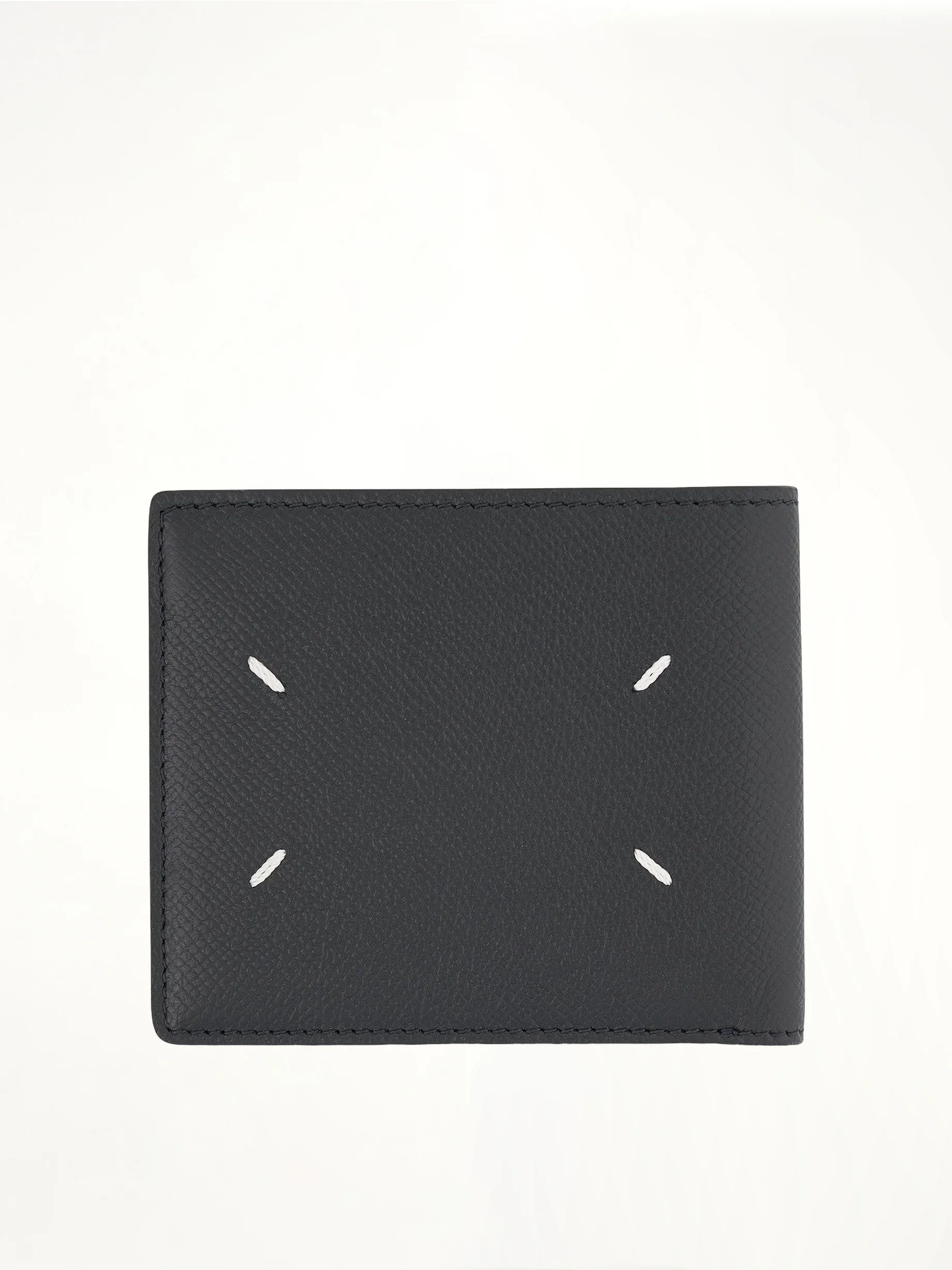Grained slim bi-fold wallet in black with leather construction and brand’s signature four-stitch logo - Composition: Outer: 100% Bovine Leather, Lining: 100% Leather - Black - Internal card slots - Internal note compartments SKU: S35UI0435P4745 T8013