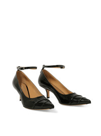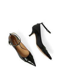 Expertly crafted with sleek black leather, the Kinkies Pumps H55 provide an elegant touch to any outfit. With a 55mm heel and cushioned insole, these pumps offer both height and comfort. Elevate your style with the confidence of a true fashion expert. - Composition: 100% Calf Leather - Buckle-fastening ankle strap - Pointed toe - Branded leather insole - Leather outsole - Made in Italy SKU: S58WL0276P8194 T8013