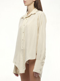Maison Margiela's Long-sleeved Shirt in Almond is a sophisticated addition to any wardrobe, offering a perfect blend of elegance and modern style. This shirt is a versatile piece that can effortlessly transition from day to night. - Composition: Primary Fabric: 100% Viscose-Rayon - Classic almond color for a timeless look - Expertly tailored for a flattering fit - Button-down front with a sleek collar - Subtle branding for a minimalist aesthetic Model is 178 cm and wears size 40 SKU: S51DT0020S76632 118