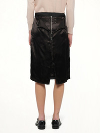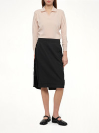 Maison Margiela's Midi Skirt in Carbon Melange/Black is a sophisticated piece that combines modern design with timeless elegance. This skirt is perfect for elevating your wardrobe with its versatile and chic style. - Composition: Fabric 1: 55% Polyester 45% Wool - Fabric 2: 100% Viscose-Rayon - Pocket Lining: 100% Cotton - Features a flattering midi length - Designed with a subtle A-line silhouette - Includes a concealed side zip closure - Crafted in a textured carbon melange fabric - Offers a versatile black color palette - Made in N/A Model is 178 cm and wears size 40 SKU: S51ME0045MTN107 855M