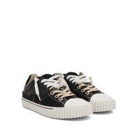 Maison Margiela two-tone lace-up sneakers in calf leather •Composition Lining: Cotton 100%, Calf Leather 100% Outer: Calf Leather 100%, Canvas 100%, Calf Suede 100% Sole: Rubber 100% •Black •Calf leather •Two-tone detail •Front lace-up fastening •Logo patch at the tongue •Branded insole •Rubber sole SKU: S58WS0234P5063 H8588
