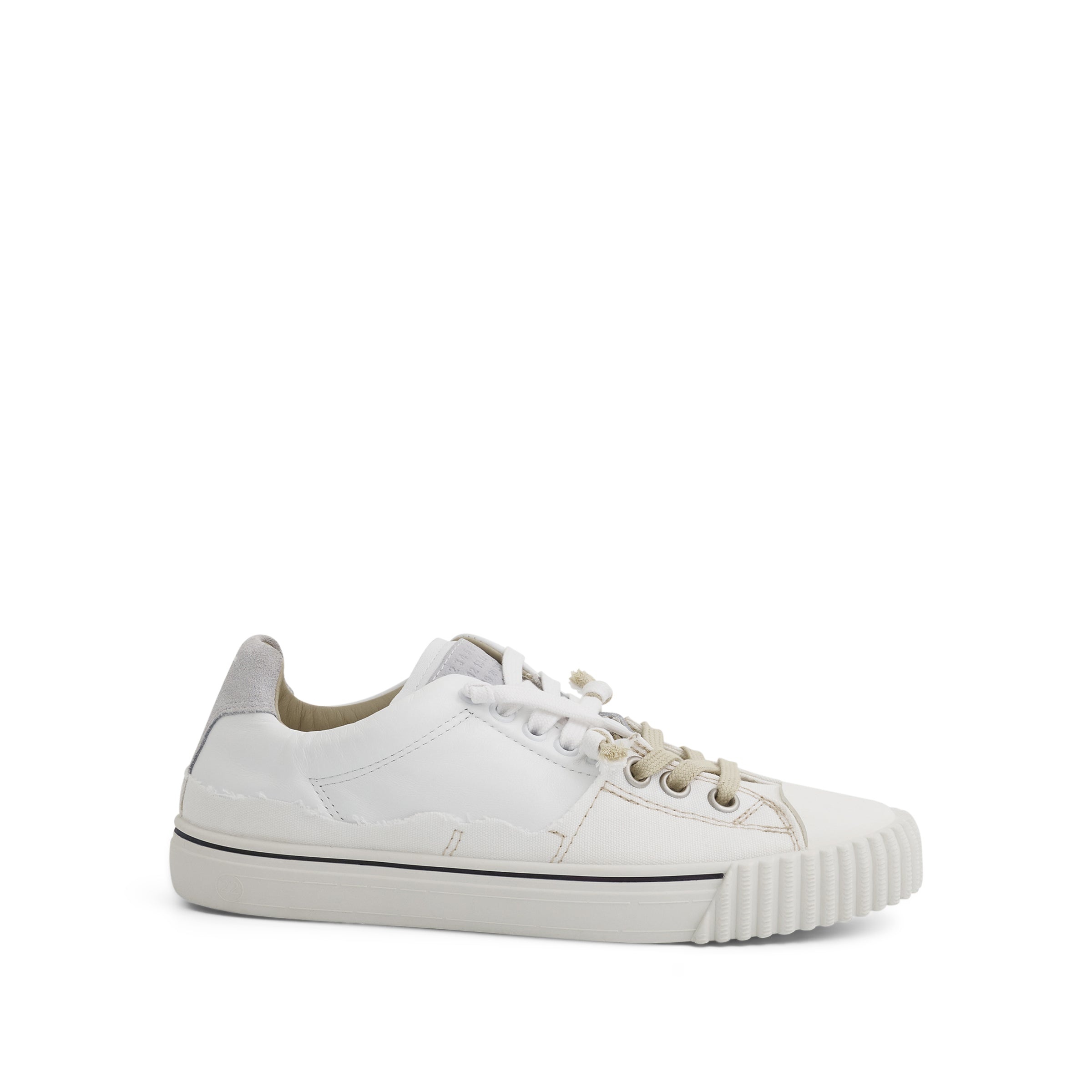 Maison Margiela New Evolution low-top sneakers with signature numbers motif •Composition Outer: Leather 100%, Cotton 100% Lining: Leather 100%, Fabric 100% Sole: Rubber 100% •Light yellow •Calf leather/cotton •Signature numbers motif •Distressed effect •Raw-cut finish •Rubber toecap •Front lace-up fastening •Branded footbed •Round toe •Flat rubber sole SKU: S58WS0234P5063 H8548