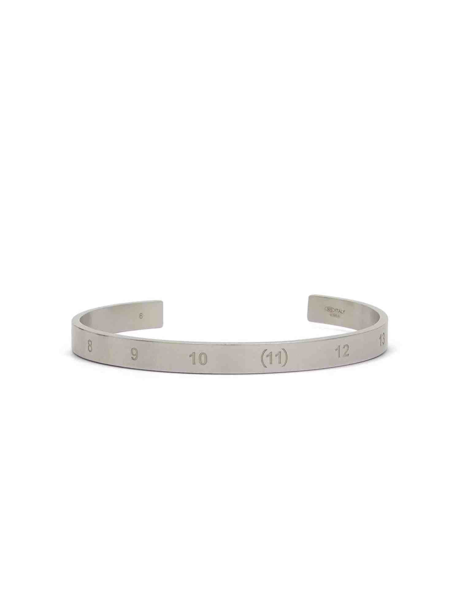 This Numerical Cuff 6.5mm Bracelet in Silver stands out with its bold design. Made from exquisite yellow gold, this bracelet features a unique numerical cuff for a sophisticated finish. - Composition: 100% Sterling Silver - Open cuff design - Signature numbers motif - Engraved detail - Slip-on style SKU: SI8UY0003SV0129 951