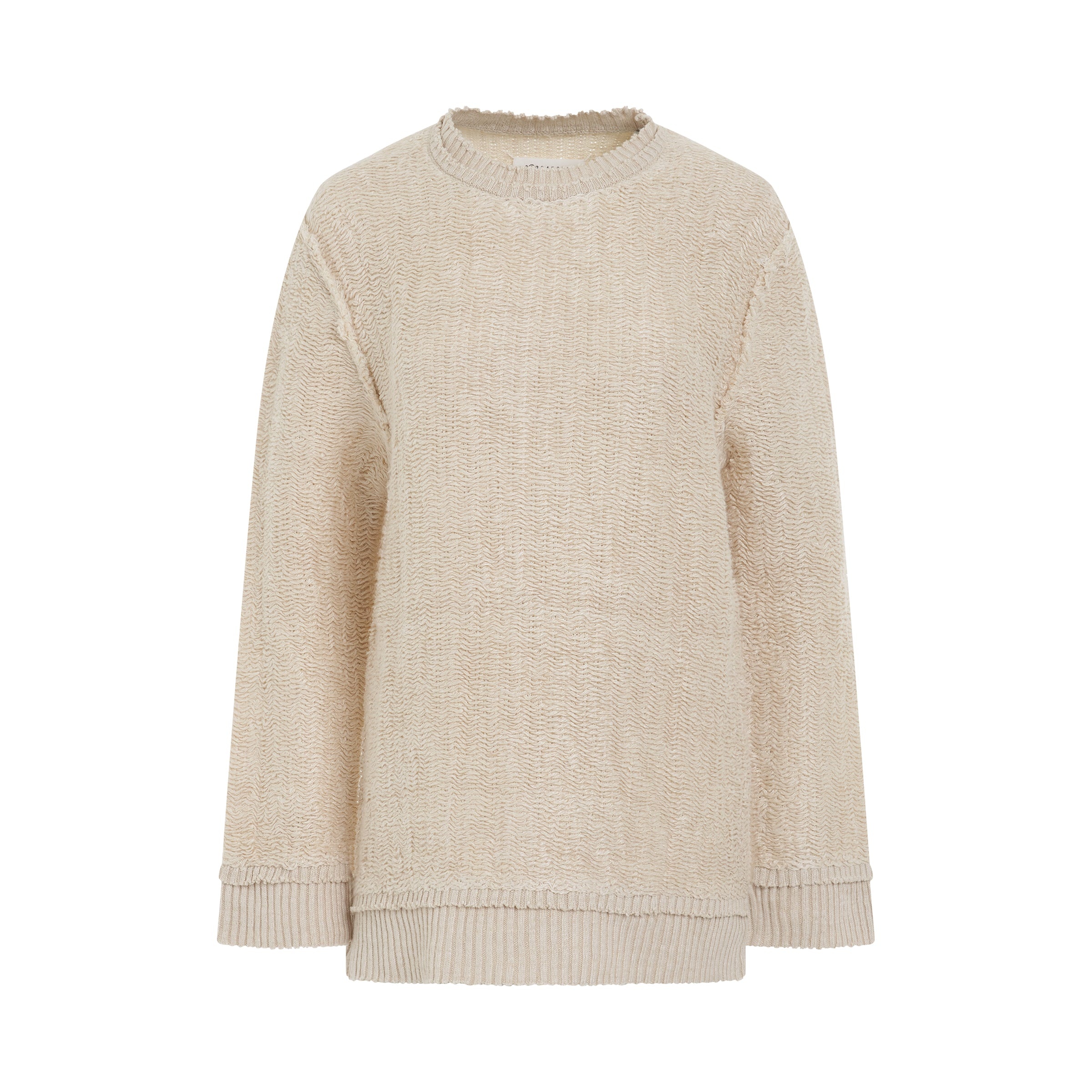 Maison Margiela crew-neck knitted jumper in hemp-cotton blend •Composition: Hemp 68%, Cotton 32% •Beige •Cotton-hemp blend •Knitted construction •Signature four-stitch logo •Crew neck •Long sleeves •Ribbed hem SKU: S51HL0001S18198 109F