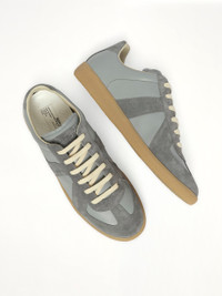 Maison Margiela's Replica Leather Sneaker in Ghost Grey is a sophisticated blend of timeless design and modern aesthetics. These sneakers offer a versatile style that seamlessly complements both casual and formal ensembles. - Composition: Upper: 100% Calf Leather - Contrast: 100% Calf Leather - Lining: 100% Cotton - Contrast: 100% Calf Leather - Inside: 100% Calf Leather - Sole: 100% Rubber - Classic low-top silhouette - Signature Maison Margiela branding - Comfortable cushioned insole - Durable rubber outsole for traction - Lace-up closure for a secure fit - Made in Italy SKU: S58WS0109P1895 T8147