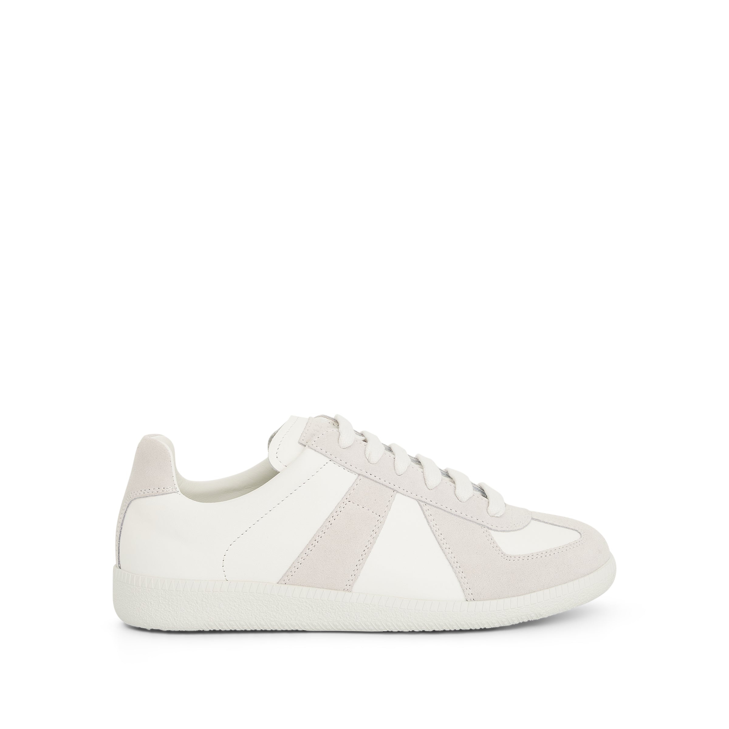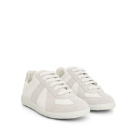 The Maison's iconic Replica sneakers are inspired by Austrian sports shoes from the seventies. Details on the Replica pairs are continually reworked in line with the season's inspirations. This iconic Replica sneaker in white panelled design and suede trim provide a classic look that will never go out of style, perfect for any season. Experience timeless style and versatility with these classic sneakers. - Composition: Lining: 100% Cotton - Outer: 100% Calf Leather - Sole: 100% Rubber - Cotton lining - Panelled design - Signature single-stitch logo - Round toe - Front lace-up fastening - Branded insole - Flat rubber sole SKU: S58WS0109P1897 101
