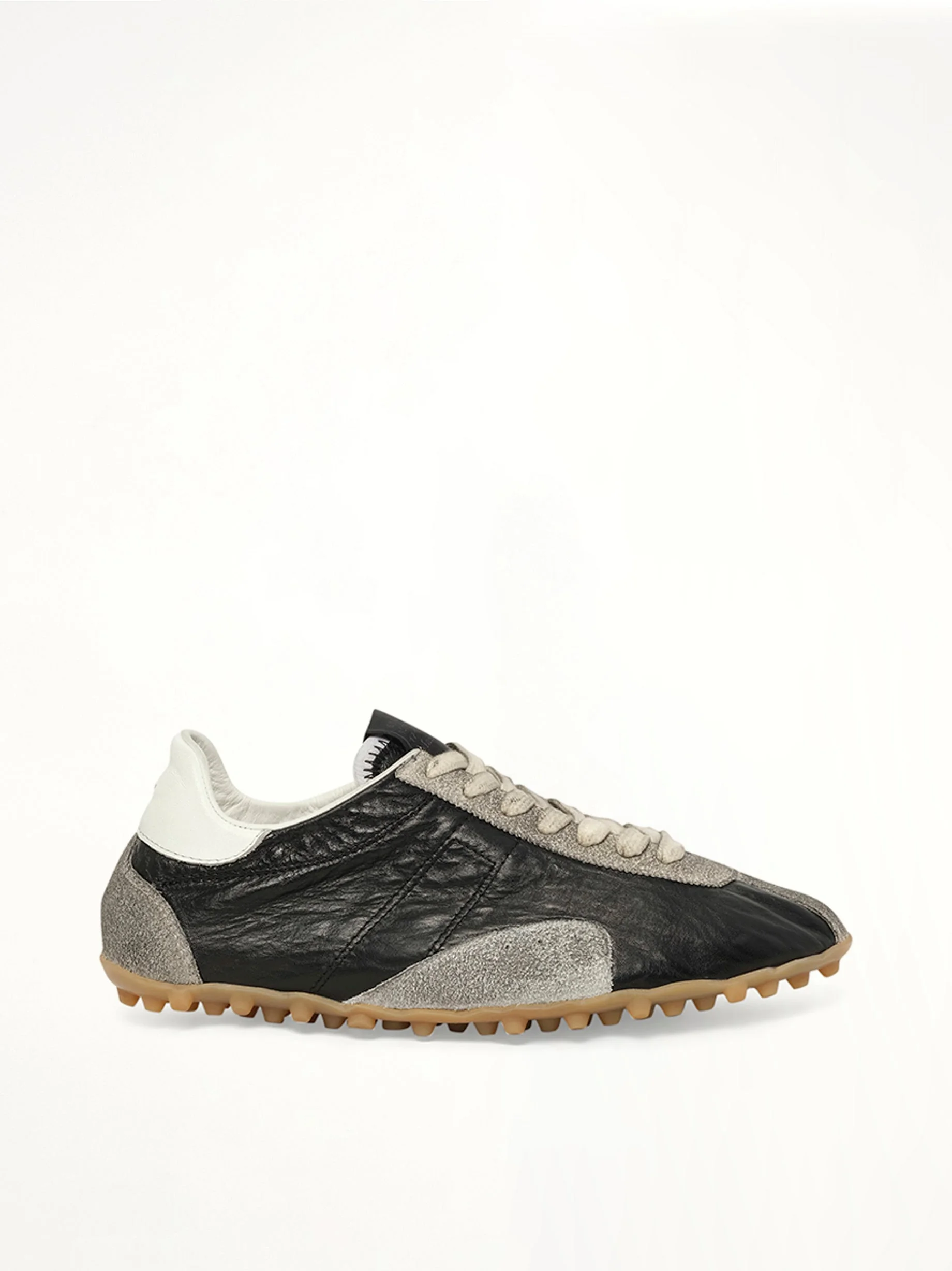 Maison Margiela's Sprinters Low Sneaker in Black/White/Grey is a stylish and versatile footwear option. Designed for both comfort and fashion, these sneakers are perfect for everyday wear. - Composition: Upper: 100% Goat Leather - Contrast: 100% Calf Leather - Contrast: 100% Calf Leather - Lining: 100% Cotton - Contrast: 100% Calf Leather - Contrast: 100% Polyamide-Nylon - Inside: 100% Calf Leather - Sole: 100% Rubber - Low-top silhouette - Color scheme: Black, White, Grey - Signature Maison Margiela branding - Lace-up closure for a secure fit - Durable rubber sole - Made in Italy SKU: S58WS0269P7383 HA316