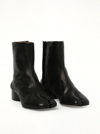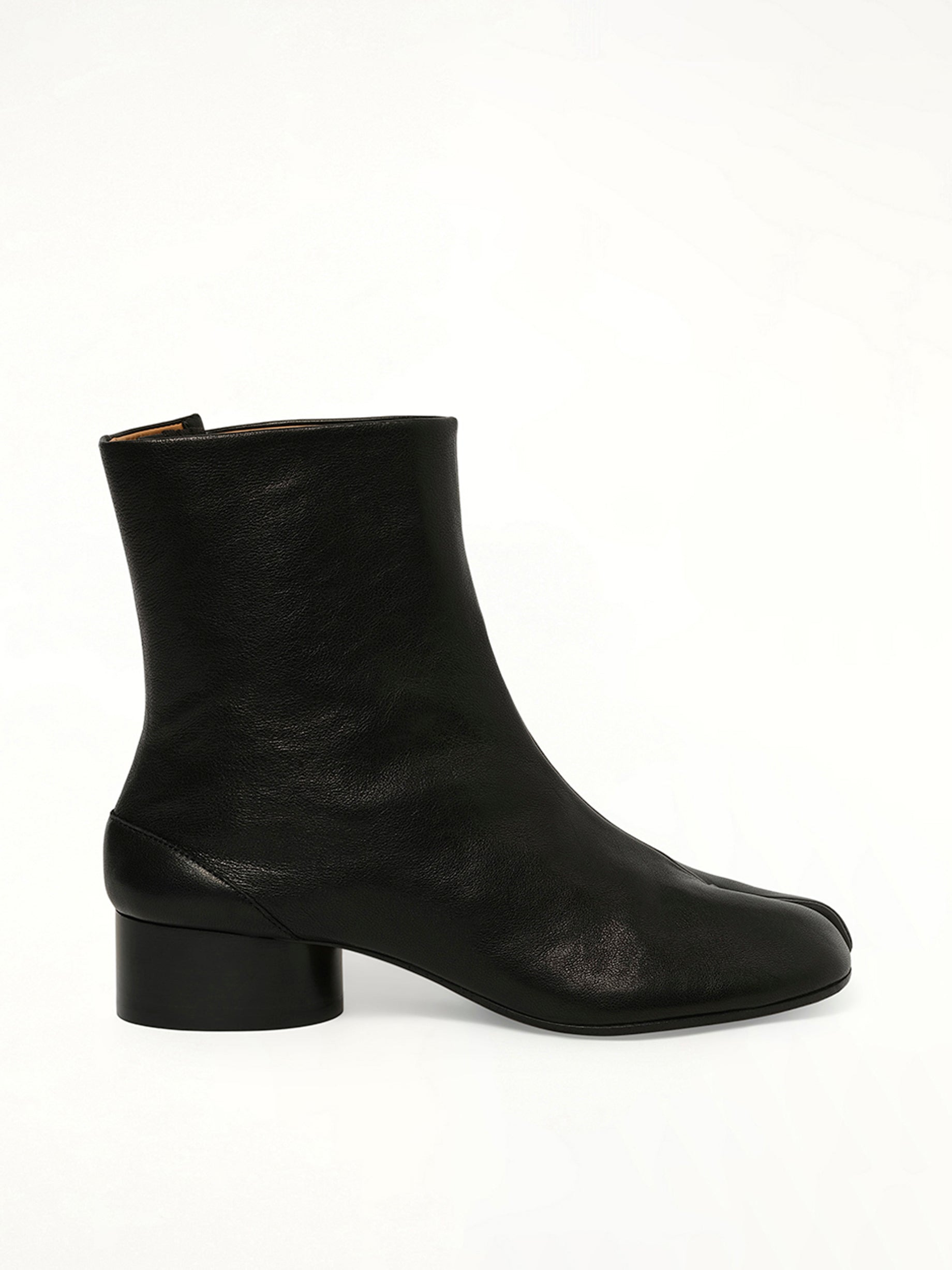 Step out in style with these Tabi Ankle Boots in black. Crafted from soft Nappa leather, these ankle boots feature a unique 3cm cylindrical heel and the iconic Tabi split-toe shape. Inspired by the traditional Japanese sock from the 15th century, these boots capture the avant-garde and rebellious spirit of the Maison Margiela. - Composition: 100% Soft Nappa Leather - 3cm cylindrical heel - Tabi split-toe shape - Concealed side fastening - Finishing with single stitch moniker at the back SKU: S58WU0273P3753 T8013