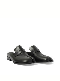 Expertly crafted with sleek black leather, our Tabi Loafer Mules offer a sophisticated and versatile addition to any wardrobe. With a unique mule design and traditional loafer detailing, these shoes provide a comfortable fit and statement style. A must-have for the fashion-forward individual. - Composition: 100% Calf Leather - Polished effect - Penny-slot stitching - Split toe - Branded leather insole - Leather sole - Made in Italy SKU: S57WP0101P3292 H8396