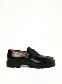 Maison Margiela Tabi split-toe loafers •Composition: Upper: 100% calf leather Lining: 100% Lamb leather Inside: 100% Lamb leather Sole: 100% Calf leather •Tabi split toe •Lace-up •White stitching at the back •Internal logo stamping •Chunky sole •Lug tread SKU: S57WR0139P3827 H8396