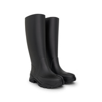 Experience style and protection with our Tabi Rain Boots in Black! Made with high-quality materials, these boots are designed for ultimate comfort and durability. Stay dry and stylish on rainy days while making a statement. - Composition: Outer: 100% Polyurethane - Lining: 90% Polyamide, 10% Elastane - Sole:100% Rubber - Round toe - Split toe - Pull-on style - Chunky rubber sole SKU: S58WW0159P5410 T8008