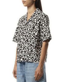 Marni's Flower Print Short Sleeve Shirt in Black features a striking floral pattern that adds a vibrant touch to your wardrobe. Made from lightweight cotton, it ensures comfort while keeping you stylish. A bold and trendy shirt that brings a fresh vibe to your casual looks. Composition: 100% Woven Cotton Relaxed fit for comfort All-over flower print for a standout style Model is 175 cm and wears size 38. SKU: CAMA0615S0UTC463 PFN99