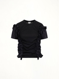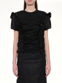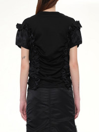 NOIR KEI NINOMIYA's Cotton Ponte T-Shirt in Black is a sophisticated blend of comfort and style. This versatile piece is perfect for both casual and formal settings, offering a sleek silhouette. - Composition: nan - Classic black color for timeless appeal - Designed with a modern, relaxed fit - Features a crew neckline - Short sleeves for a casual look - Ideal for layering or wearing alone - Made in: nan Model is 178 cm and wears size S SKU: 3P-T016-051 BK