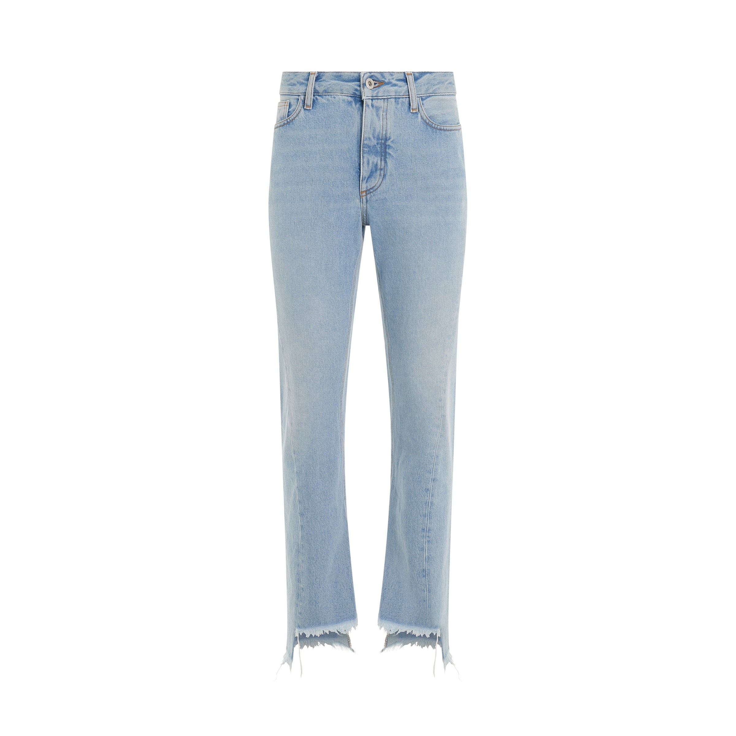 The Off-White -seamless straight-leg pants are a stylish and contemporary choice for denim lovers. These pants are crafted in a light blue wash, giving them a classic and versatile look that can be easily paired with various outfits. What sets these jeans apart is their signature laid-back touch created by the distressed frayed hems. The frayed edges add a touch of edge and casualness to the jeans, elevating them from traditional straight-leg jeans to a more unique and fashionable piece. With their straight-leg cut, these jeans offer a timeless and flattering silhouette that suits a wide range of body types. • Composition: Outer: Cotton 100% • . Lining: Cotton 100% • Straight leg jeans • Distressed frayed hems • Front button fastening • Front pockets and back pockets SKU: OWYA053S23DEN0014000