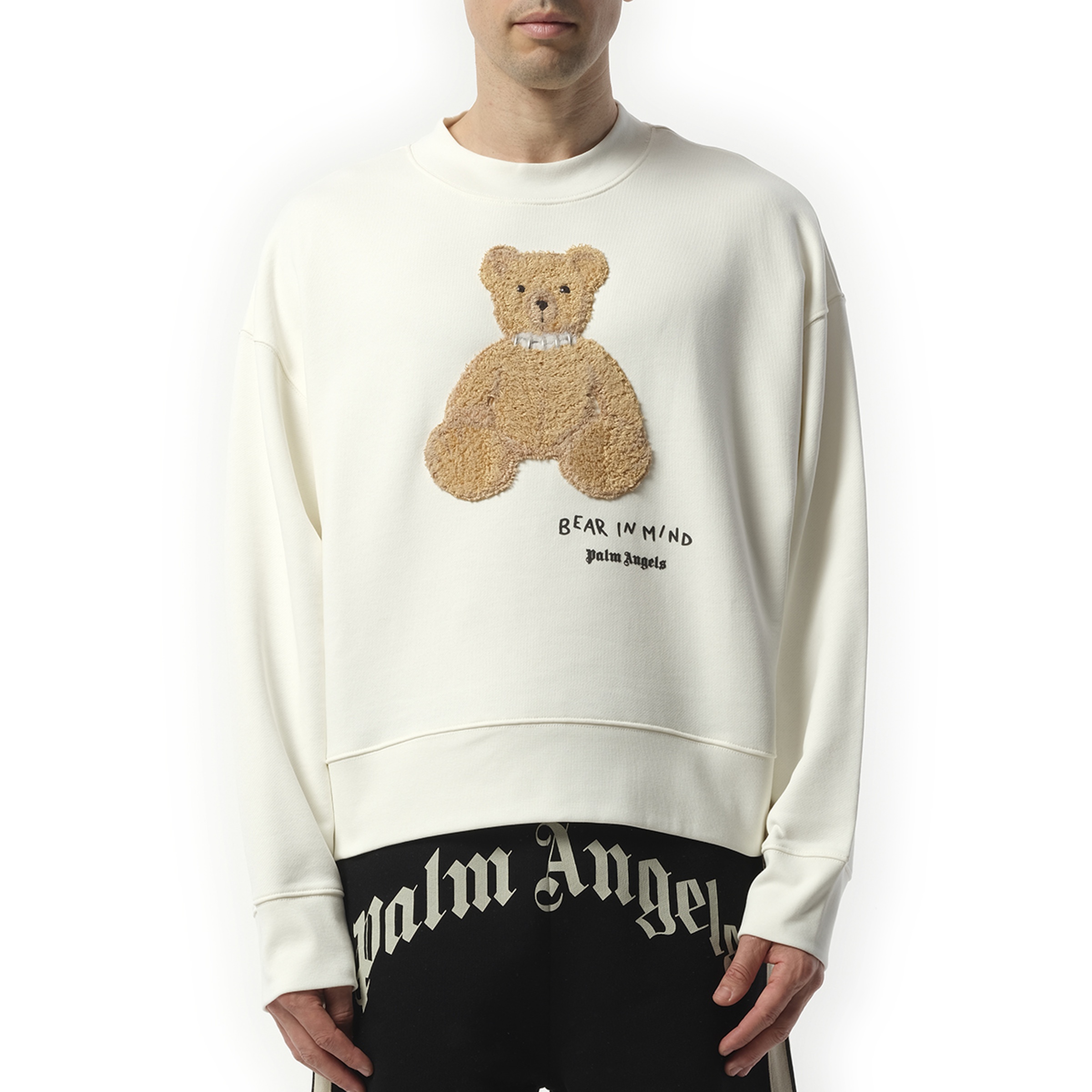 Stay cozy and stylish in our Bear in Mind Crewneck Sweatshirt, featuring a timeless off white and brown color combo. Made with high-quality material, this sweatshirt is perfect for any season. Keep the bear in mind and upgrade your wardrobe today. - Composition: 100% Cotton - Logo print to the front - Crew neck - Drop shoulder - Long sleeves - Made in Turkey Model is 192 cm and wears size M SKU: PMBA026S25FLE0030360