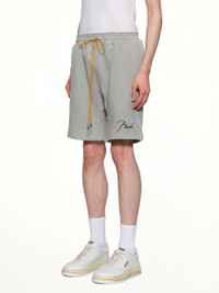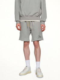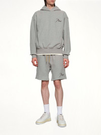 Rhude's Classique Sweatshort in Heather Grey/Black is a stylish and comfortable addition to your casual wardrobe. These sweatshorts offer a modern fit with a touch of streetwear flair. - Composition: 90% Cotton, 10% Poly - Color: Heather Grey/Black - Elastic waistband with drawstring - Side pockets for convenience - Signature Rhude branding - Relaxed fit for comfort - Made in USA Model is 187 cm and wears size M SKU: RHFW25ST02829 3168