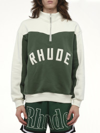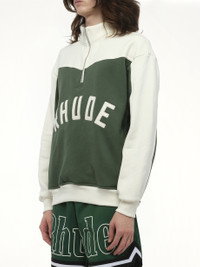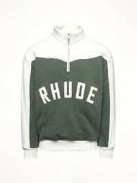 Rhude Monaco Half-Zip Sweatshirt in Hunter Green/Cream