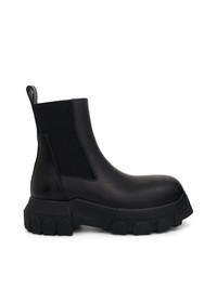Beatle Bozo Tractor boots from Rick Owens featuring black, leather, round toe, elasticated side panels, pull-tab at the heel and chunky rubber sole. - Composition: Leather/Rubber - Colour: Black - Ankle-high buffed calfskin - Round Toe SKU: RP01C5881 LE 99