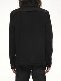 Rick Owens's Brad JKT in Black is a striking addition to any wardrobe, offering a bold and contemporary silhouette that embodies the designer's avant-garde aesthetic. This jacket is perfect for those who appreciate high fashion with a touch of edge, making it a versatile piece for both casual and formal occasions. - Composition: 100% Wool, Body And Pockets Lining 100% Cotton. Sleeves Lining 100% Cupro - Features a sleek, modern design with a unique cut. - Includes signature Rick Owens detailing for a distinctive look. - Designed for comfort and style, suitable for various settings. Model is 187 cm and wears size 48 SKU: RU02E1764 WBD 09