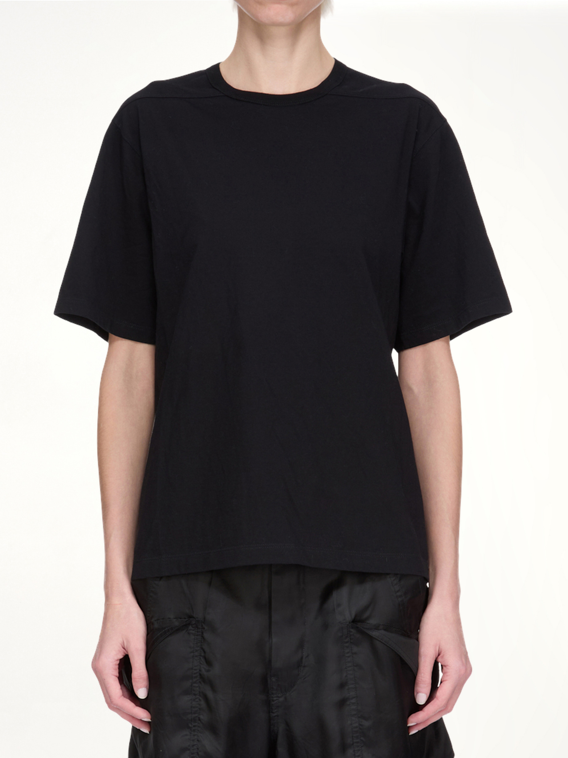 Rick Owen's Brad T in Black is a versatile and stylish addition to any wardrobe. Made with comfortable, high-quality fabric, this t-shirt is perfect for everyday wear. Its sleek black colour and classic design make it a timeless piece that can be dressed up or down. - Composition: 100% Cotton - Below hip length - Short sleeves - Signature single seam - Made in Italy SKU: RP02E4200 JA 09