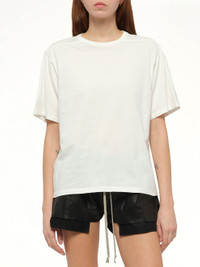 Rick Owens's Brad T in Milk is a distinctive piece that embodies the designer's avant-garde aesthetic. This T-shirt offers a unique blend of minimalism and bold design, making it a standout addition to any wardrobe. - Composition: 100%Cotton- - Color: Milk - Relaxed fit - Signature elongated silhouette - Round neckline - Short sleeves - Subtle draping effect - Made in Italy Model is 178 cm and wears size 40 SKU: RP02E4200 JA 11