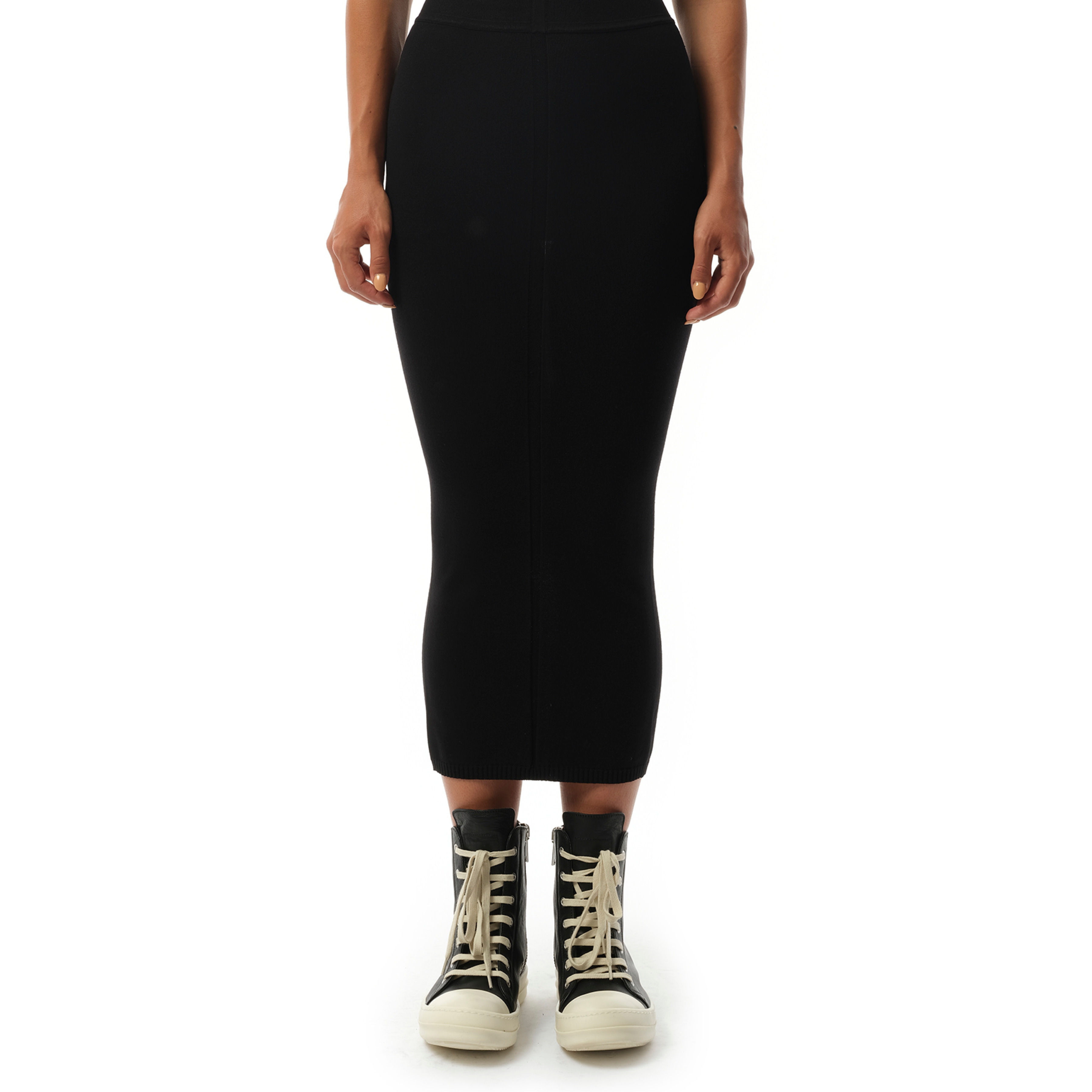 This Calf Skirt in Black is a versatile and stylish addition to any wardrobe. Made with durable fabric and a sleek black design, it is perfect for any occasion. Its calf-length provides ample coverage while its classic look offers a touch of sophistication. - Composition: 68% Viscose, 32% Polyester - Elasticized waistband - Rib-knit panel at waist - Raw edge at hem - Made in Italy Model is 175 cm and wears size S SKU: RP01E7686 VI 09