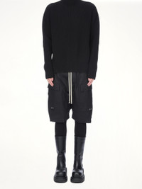 Rick Owens's Cargo Pods in Black is a statement piece that combines avant-garde design with practical functionality. These cargo pods offer a unique silhouette, perfect for those who appreciate bold fashion choices. - Composition: 97%Cotton-3%Elastane- Buttons 100%Buffalo Horn- - Distinctive drop-crotch design - Multiple spacious cargo pockets - Elastic waistband with drawstring for adjustable fit - Relaxed, oversized fit for comfort - Signature Rick Owens aesthetic SKU: RU02E1389 TE 09
